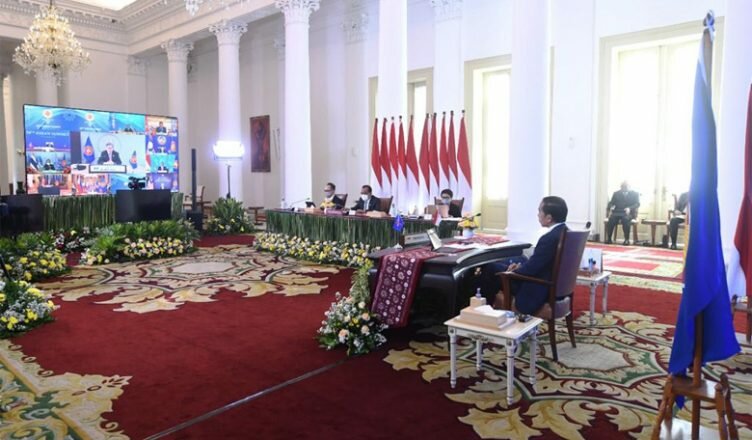 Digelar secara virtual, Selasa (26/10), pemimpin junta militer Myanmar dikecualikan dalam pertemuan tersebut. Presiden AS Joe Biden dilaporkan akan hadir. Presiden Jokowi hadir di Istana Bogor Selasa, 26/10/2021 ( foto setpres).