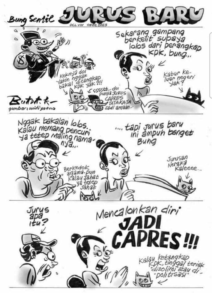Kartun karikatur komik strip ‘Bung Sentil’ yang sebagian besar temanya bersinggungan dengan masalah politik, demokrasi, kekuasaan (kepemimpinan), dan perilaku pelaksananya, memang telah berakhir. Namun Butet masih menyimpan file yang ditolak, untuk dinikmati.