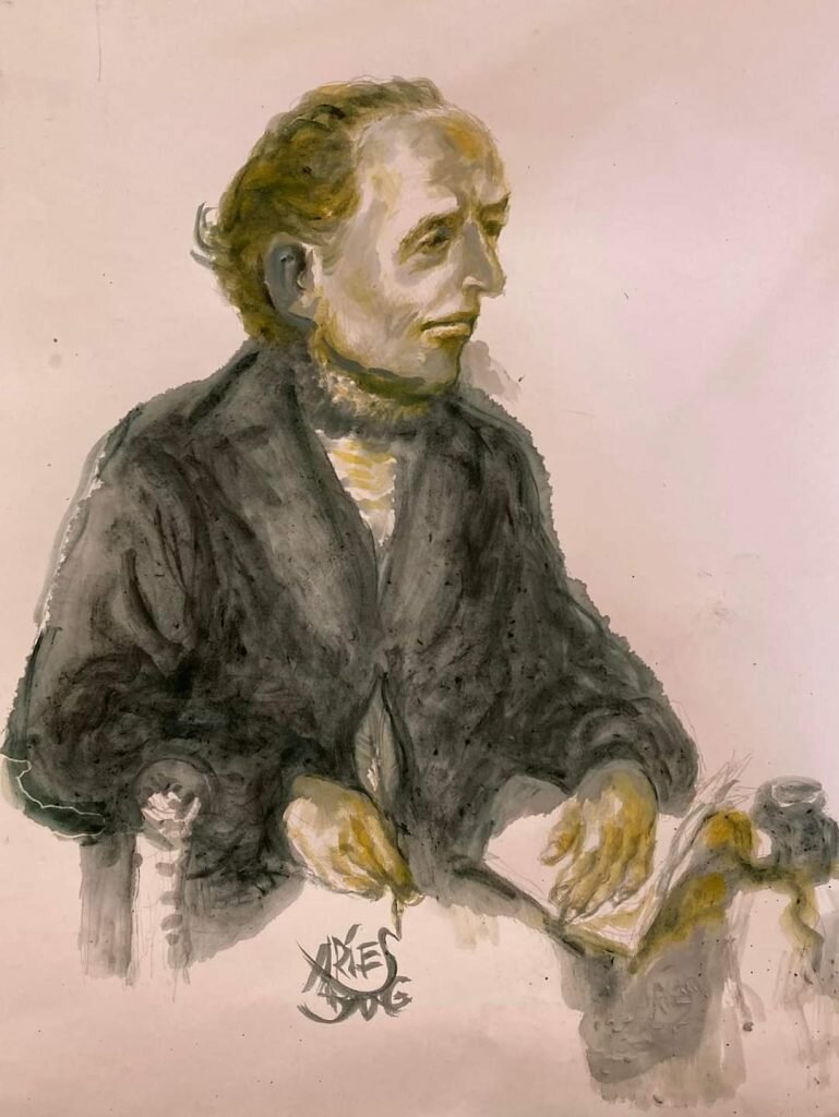 Ilustrasi: HC Andersen aku corat-coret, beberapa menit lalu, dengan media pensil dan cat air di karton Manila berukuran sekitar 55×40 cm…