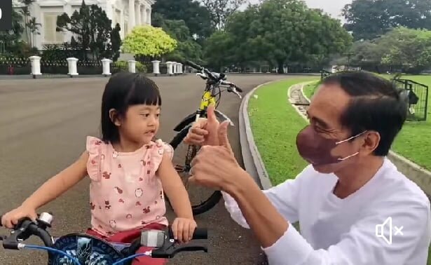 Seide.id – Jika kemarin Jokowi menemani cucu tertuanya, Jan Ethes bermain sepeda, kini Jokowi menemani bermain cucu keduanya, Sedah Mirah, dan hilang rasa penat dan sedihnya pada 9 /9/2021.