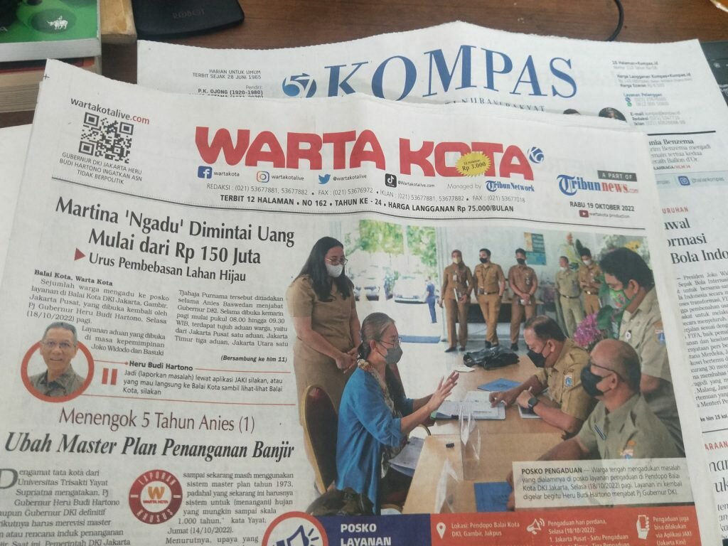 Koran WARTA KOTA, misalnya menampilkan foto layanan warga di Balaikota yang populer di zaman Ahok BTP dan dibuka lagi. Sejak Anies Baswedan berkuasa diibukota, layanan itu ditiadakan.