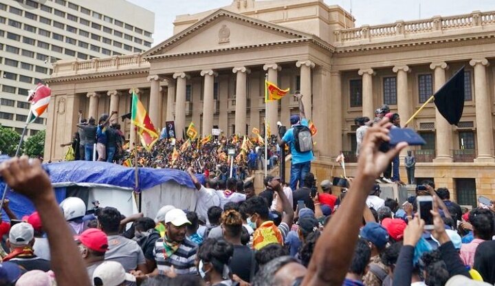 Personel militer dan polisi di kediaman dan Kantor Sekretariat Presiden sudah tidak mampu menahan massa, karena mereka meneriakkan slogan-slogan yang meminta Presiden Gotabaya Rajapaksa untuk mundur