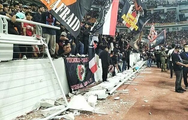 Namun sekitar pukul 17.42 WIB, pembatas tribun utara dengan tinggi kira- kira 2 meter dan panjang 20 meter mendadak ambruk.