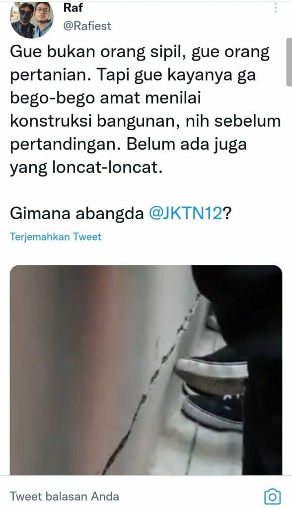 Gue bukan orang sipil, gue orang pertanian. Tapi gue kayanya ga bego-bego amat menilai konstruksi bangunan, nih sebelum pertandingan. Belum ada juga yang loncat-loncat.
