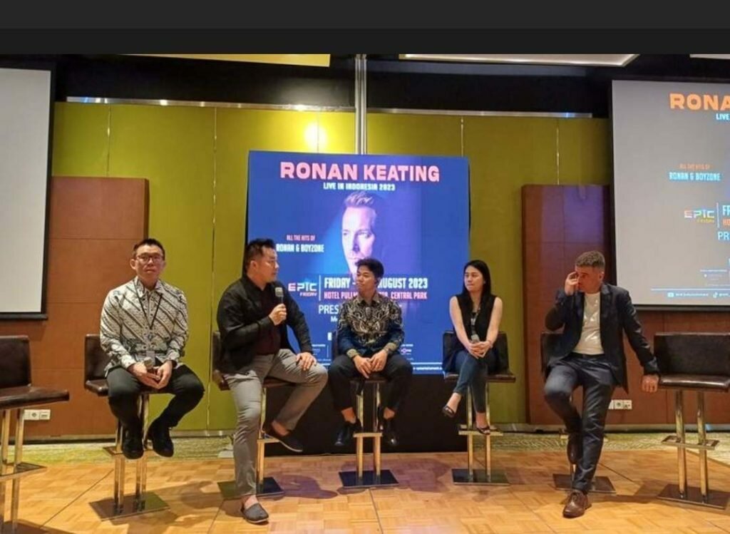 “Ronan salah satu penyanyi Irlandia top 3 di Spotify. Indonesia masuk top 3, kurang lebih sebulan ada 125.000 listeners,” kata Effendy Gunawan saat konferensi pers di Hotel Pullman Central Park, Jakarta Barat, Senin (26/6/2023).