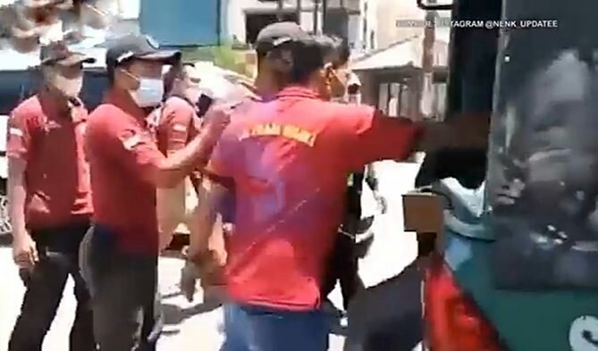 Pada video, tampak Agus Darnoto, dengan kotak uang ditangan, coba melarikan diri dari kejaran Satpol PP. Tapi tidak bisa. Dia kalah cepat dengan tangan Satpol PP.